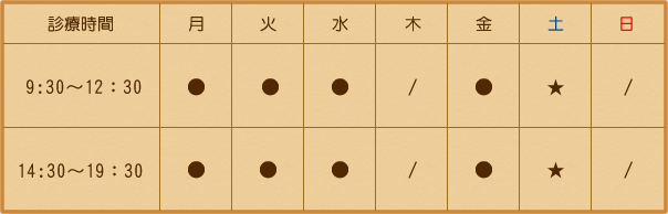 祝日のある週の木曜日 9:00~12:30/14:00~17:00